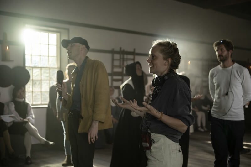 In the same way that when you see Ann ringing the bell at the end in the Shaker village, there’s a really nice link between all the handbells that are in the next scene with all the fire. There’s 50 or 60 handbells being rung and that kind of dissonant sound is when it’s all burning down. Just loads of handbells. I had about 50 handbells in my flat in London that I rented out. They were so beautiful and I used them for the whole film. Because the actors were singing in different keys that worked with their vocal range, I had to rent all of the handbells in five different octaves. When they were just laid out on my floor, I thought, what would it sound like to hear all of them rung at the same time?